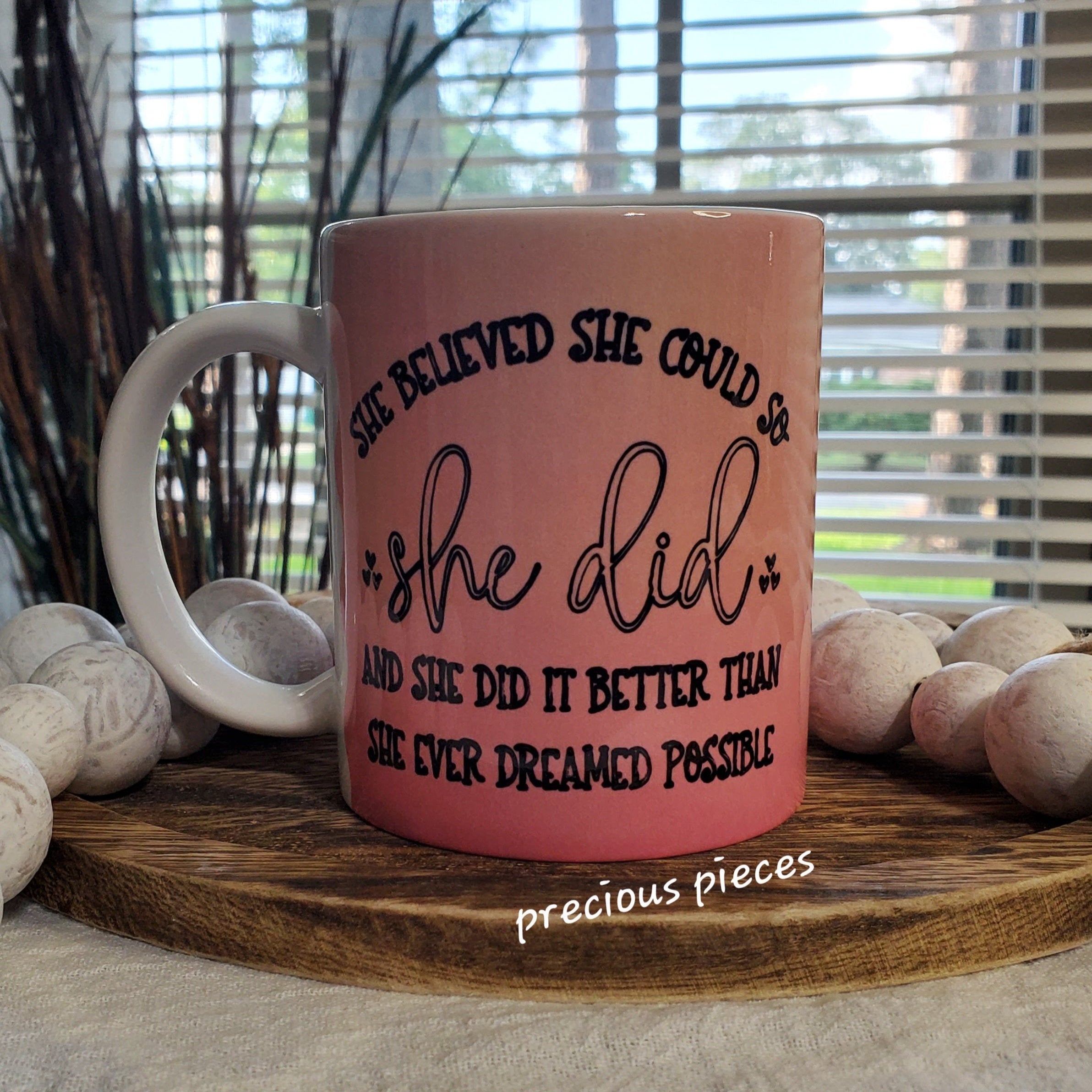 12 oz. and 15 oz. ceramic mugs Made with infusible ink which...