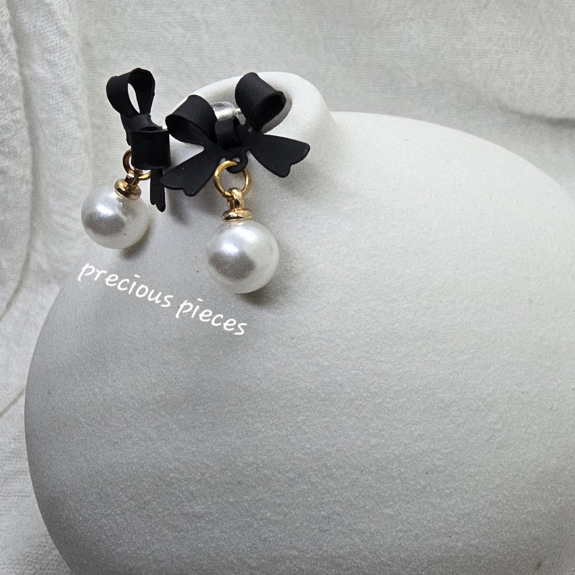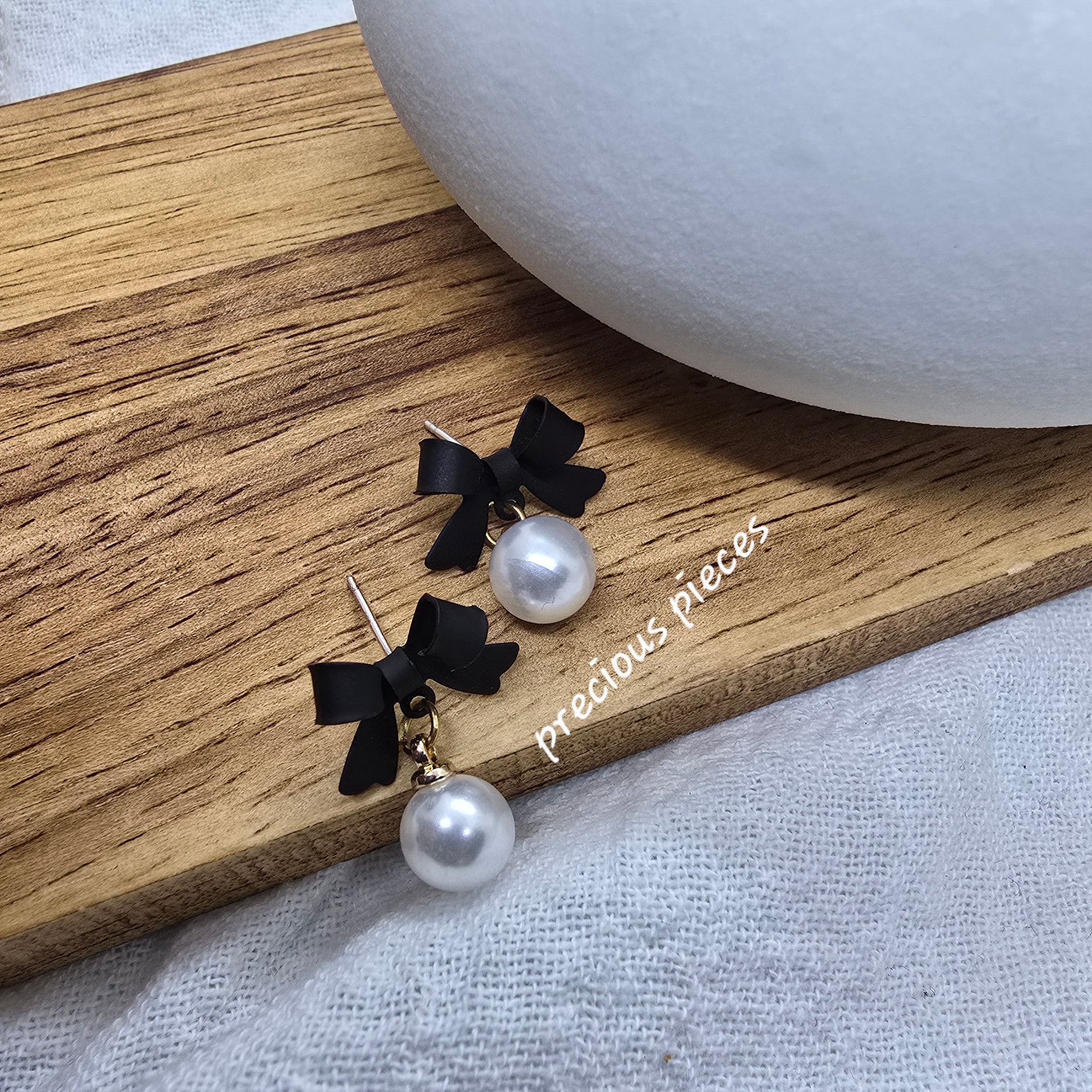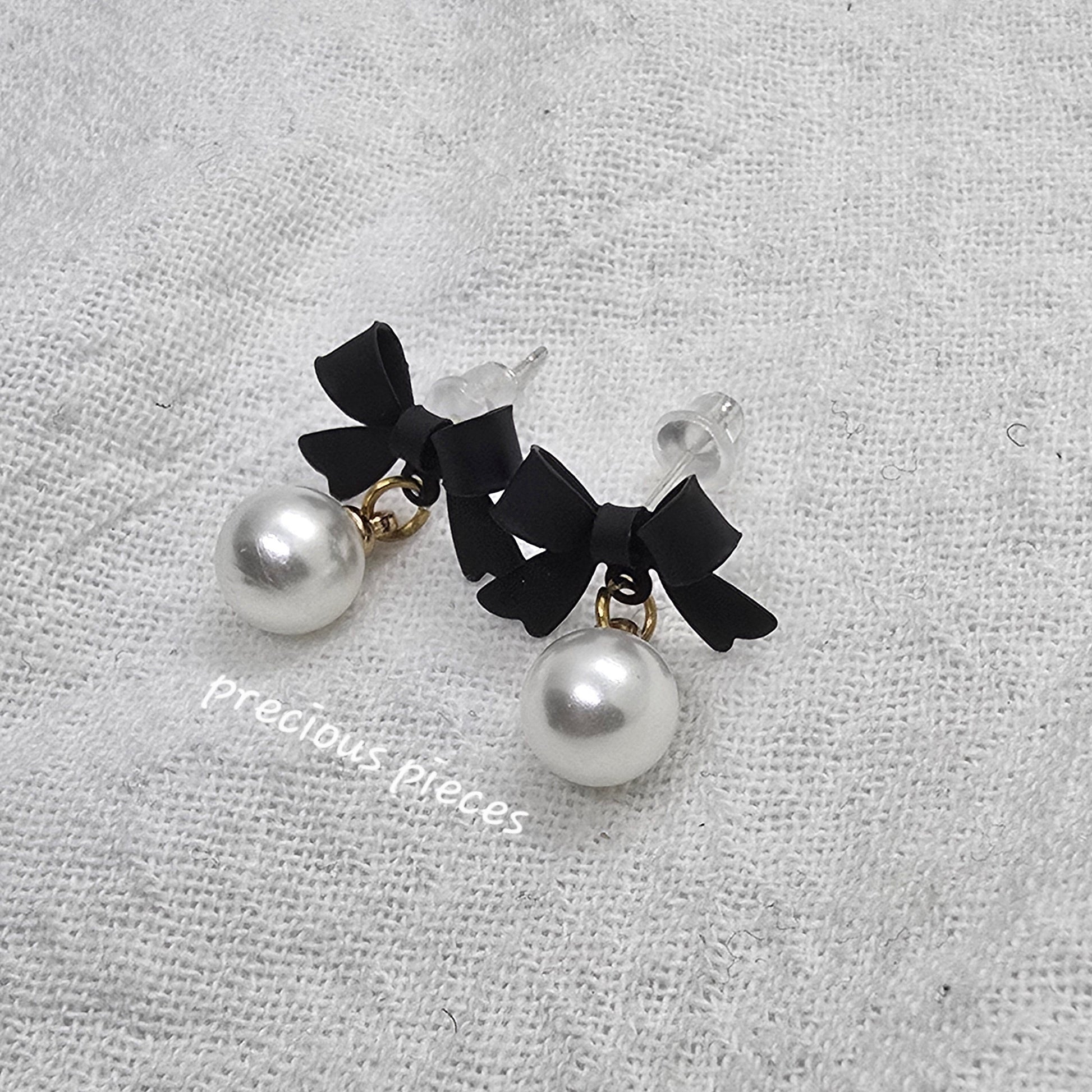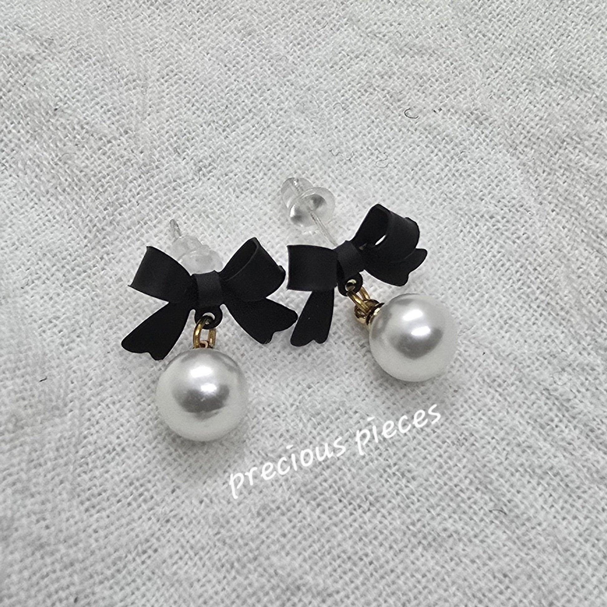 Black Bow and Pearl Earrings
