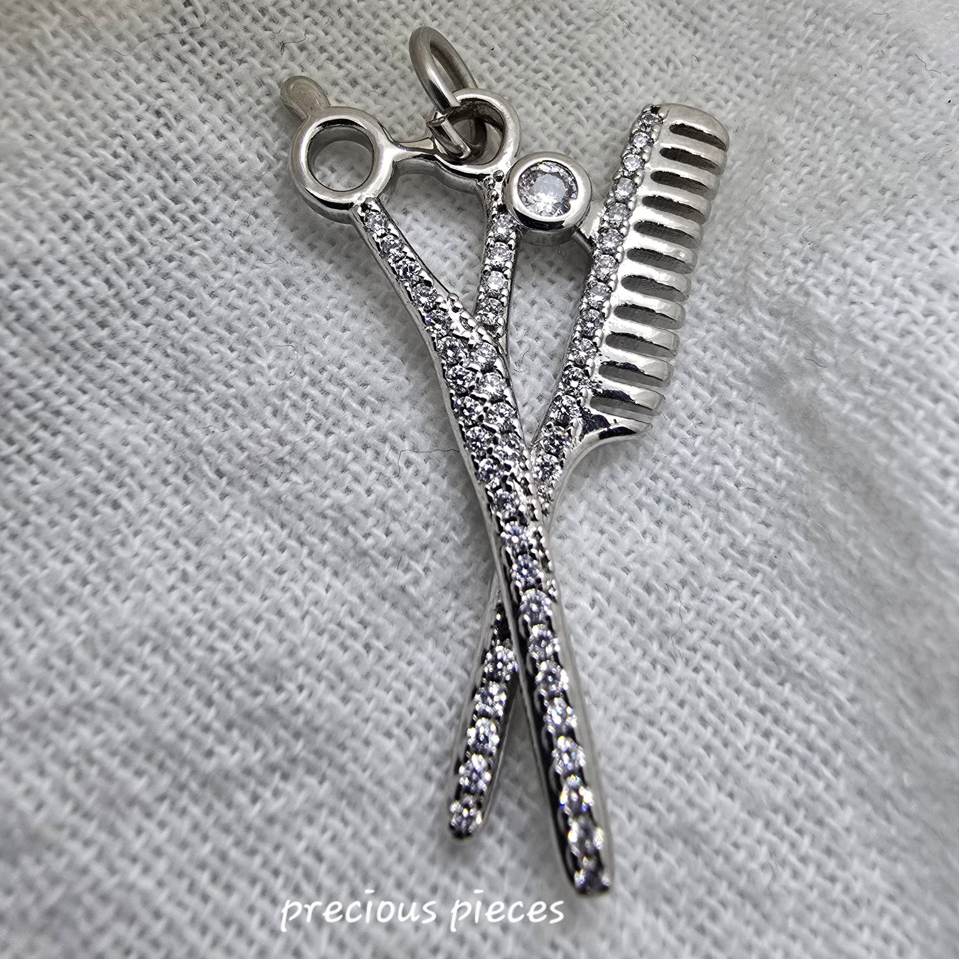 Make a unique necklace with silver and gold CZ comb and scissors combo, this charm is perfect for a beautician or barber. Purchase a charm for yourself or for that special stylist in your life.