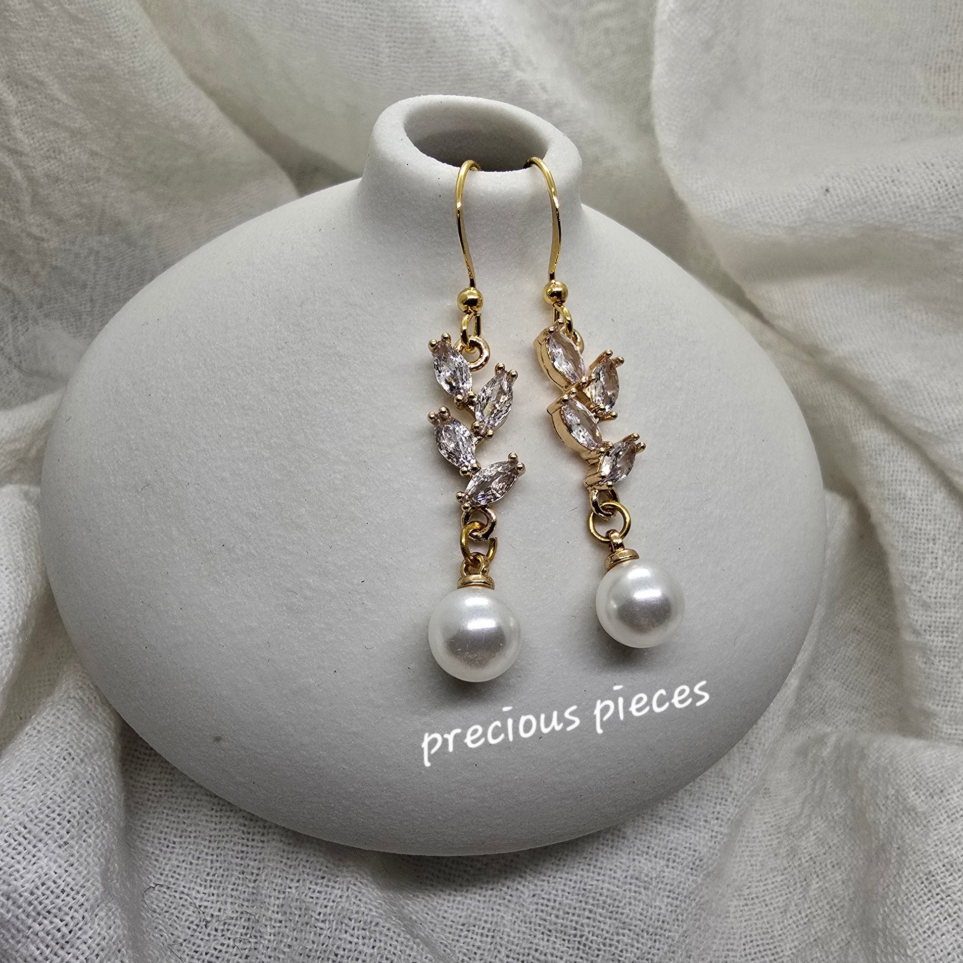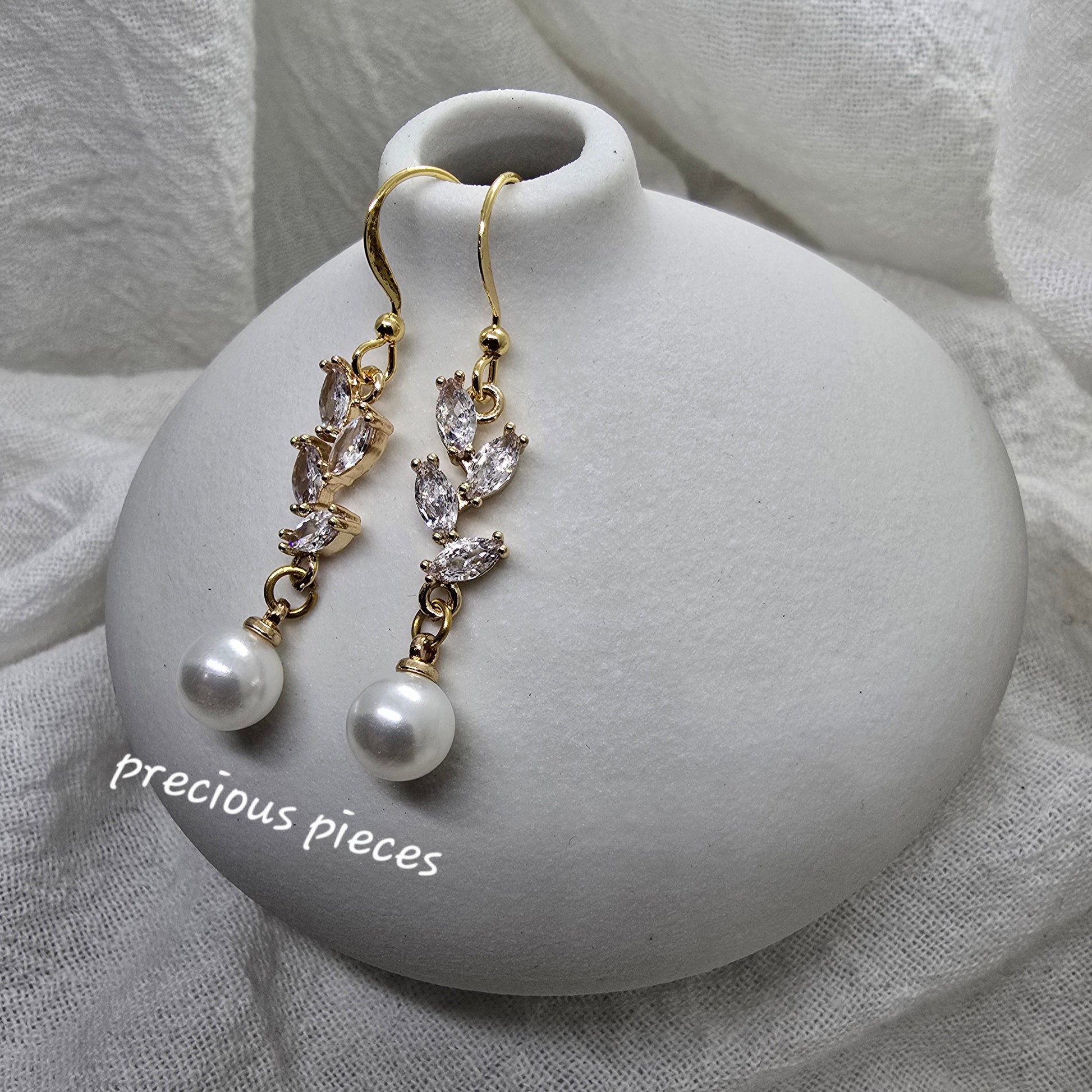 Cubic Zirconia Branch Pearl Earrings