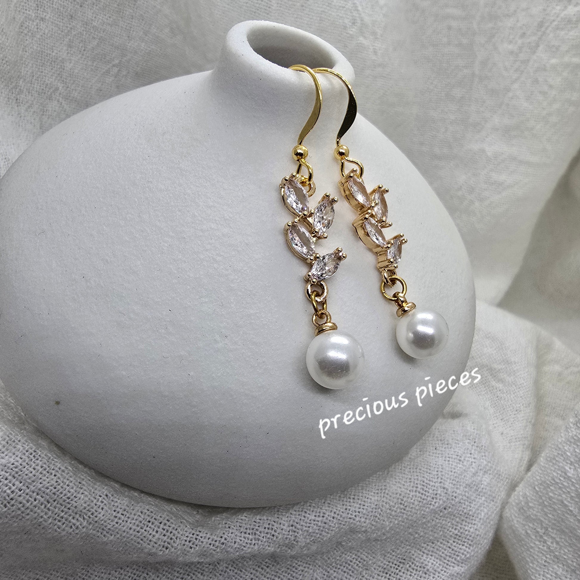 These elegant earrings feature a delicate design. At the bottom of each earring is an 8mm pearl pendant, adding a touch of sophistication. These earrings are perfect for proms, weddings, or other special occasions. Add them to your collection today.