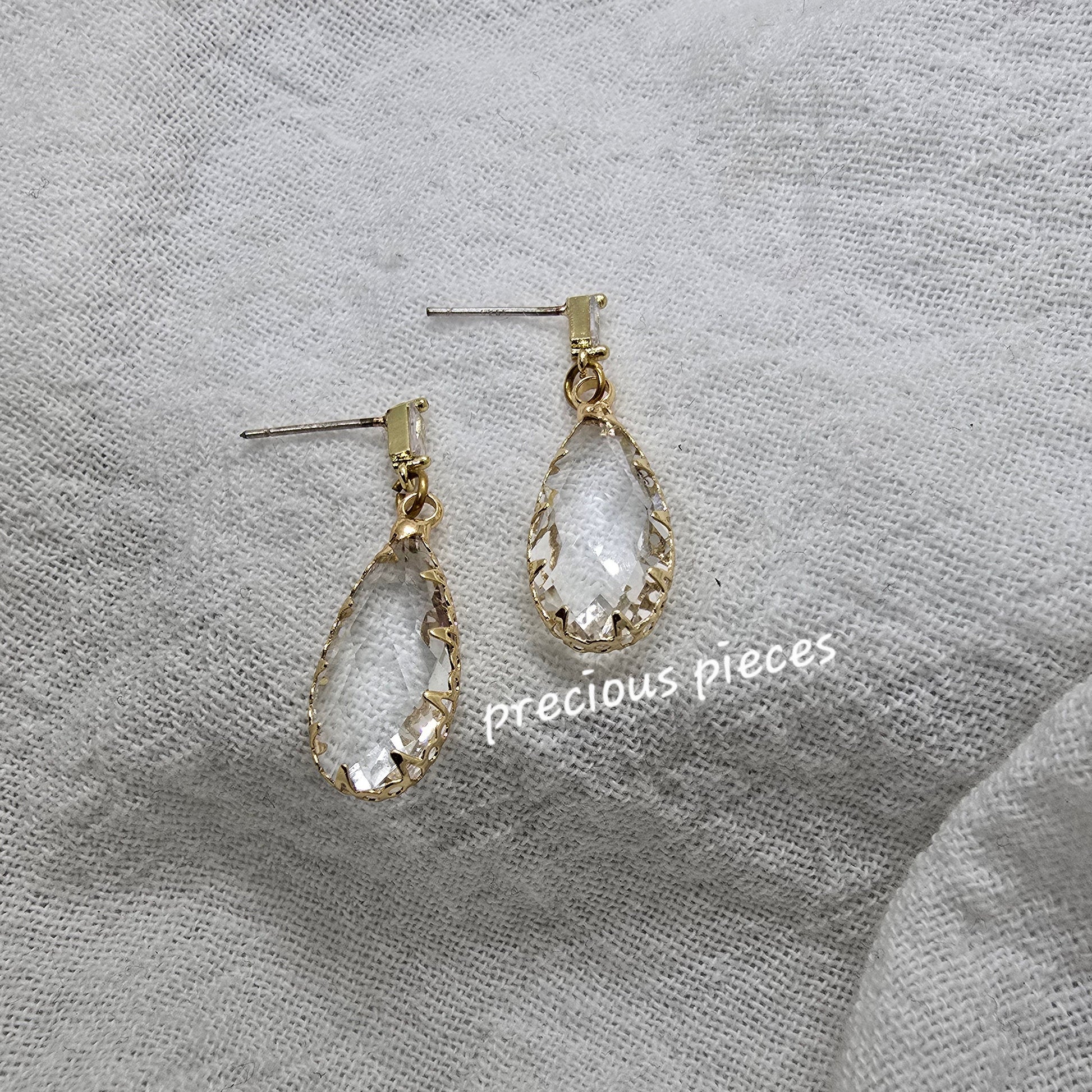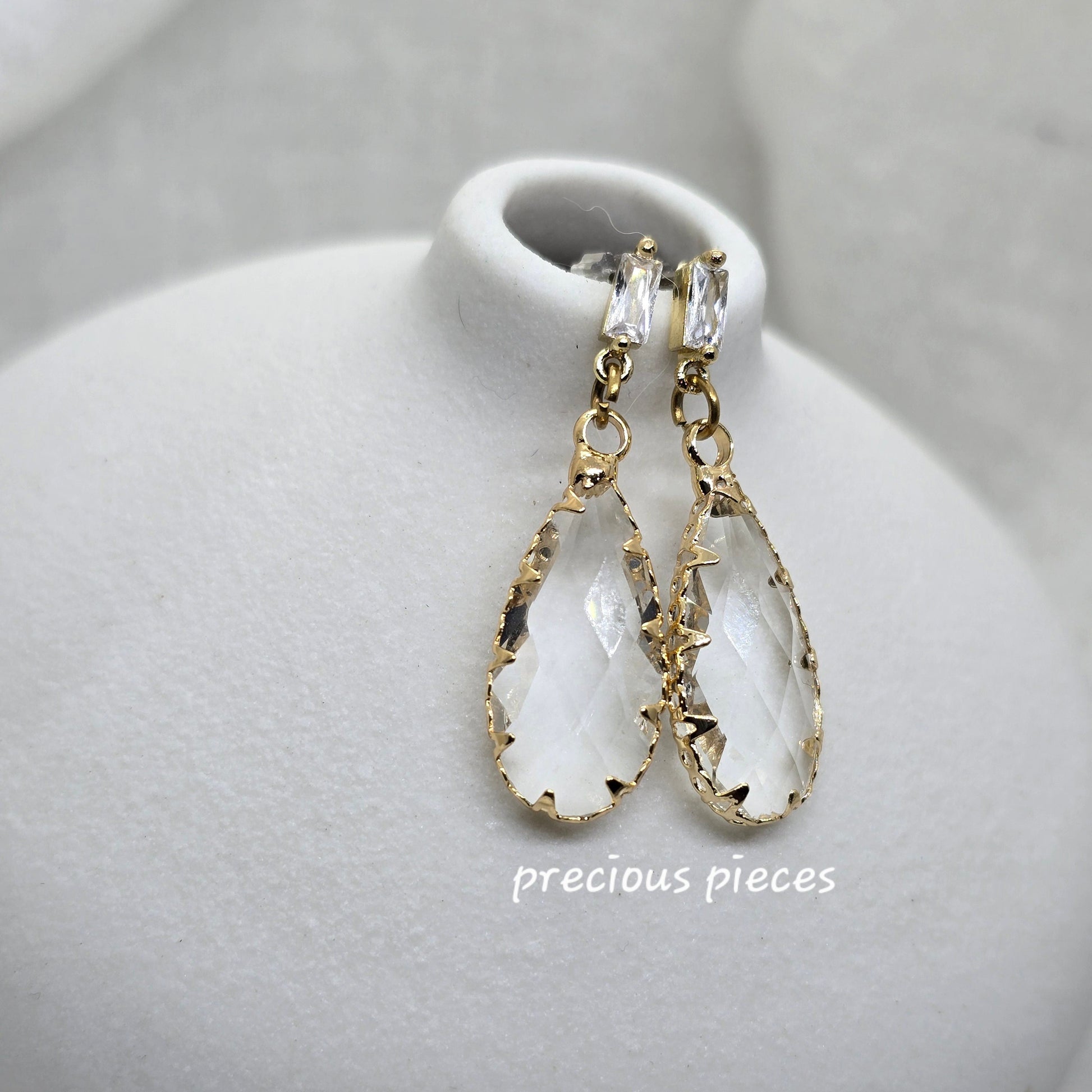 These lovely and elegant earrings feature faceted clear glass crystal teardrop. They are perfect to wear for that special occasion. Add them to your earring collection today!