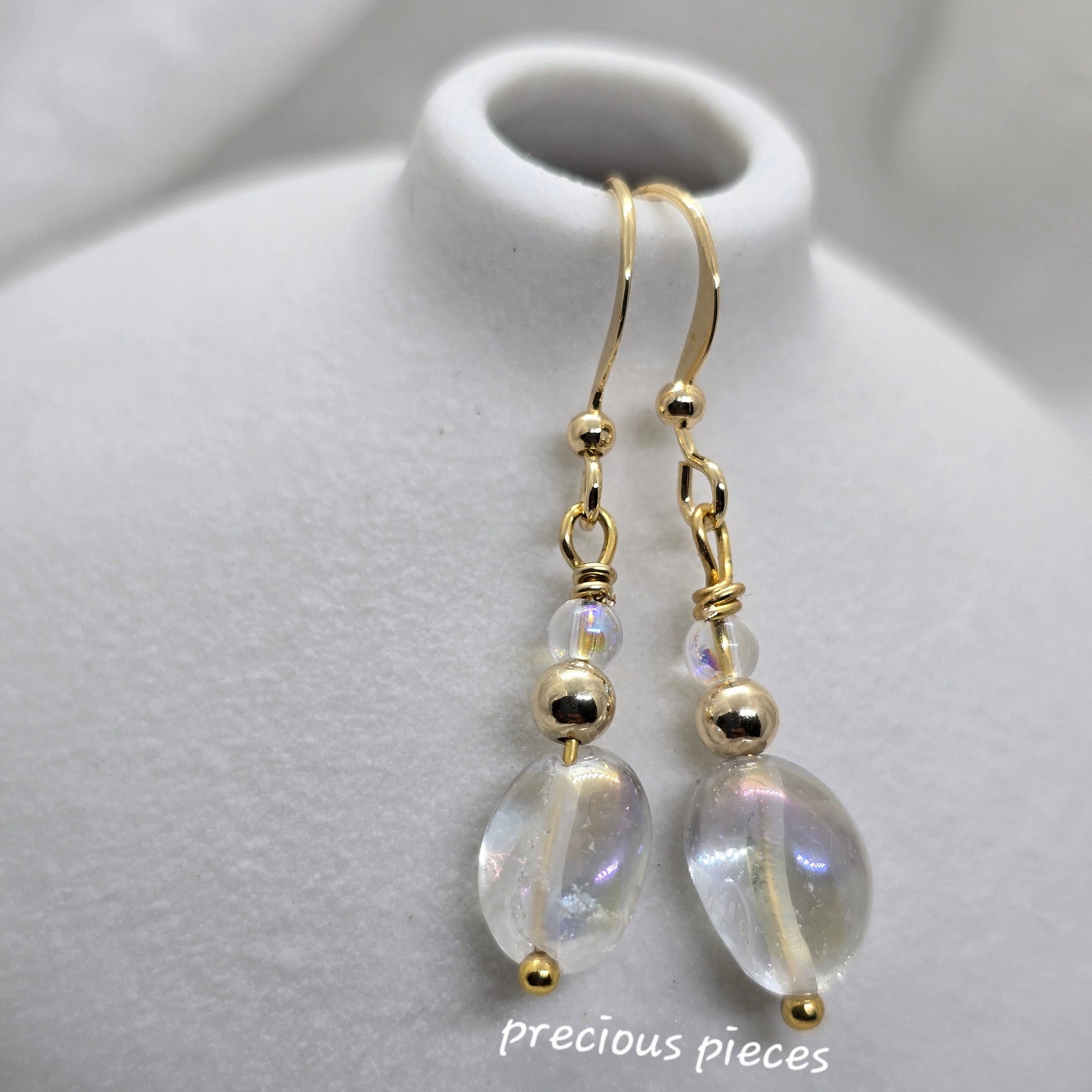These earrings are made with quartz potato beads giving them an elegant look that is perfect for any occasion. They can be worn to a wedding, prom, party, or work. Add them to your jewelry collection today!